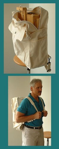 Canvas Backpack for French Easels...This sturdy canvas backpack is made to carry a full size French Box Easel. It makes Plein Air painting even easier! It features a roomy pocket in the back; and additional pockets down the side. The straps are reinforced at the shoulders for extra comfort. This makes an excellent backpack for any Plein Air needs- you don't have to put an easel inside of the main compartment! You can fill it up with all of your Plein Air supplies!