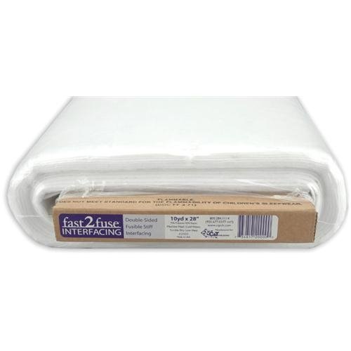 Fast2fuse Double-Sided Fusible Stiff Interfacing is:Fast - fusible on both sizes to save you steps!Easy to mark, cut, and fuse - and it won't stretch or tear!Save money! You get 2 layers of fusible plus interfacing in 1 product.Give flexible, firm support to all your projects including: fabric bowls and boxes, tote bags, purses and backpacks, hats and caps, costumes and accessories, home decorating including lamp shades, place mats & more, kids' crafts, doll accessories...Machine wash, tumble dry Size: 22" by 10 yard bolt. Heavyweight 3/32" thick. Color: White. Also available in regular weight