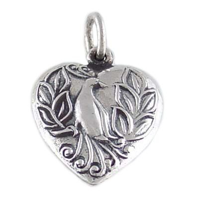For Today Peacock Puffed Heart Vintage Style 925 Sterling Silver Traditional Charm or Pendant