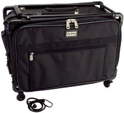 Light, easy, and functional, the Tutto Craft On Wheels case is the ultimate case for the scrapbooker, stamper, and general crafter on the go! It features a removable puller bar, a collapsible frame for easy storage, and lots of pockets for organizing all kinds of supplies - even an accordion file for papers! The double zipper top makes taking your supplies in and out a breeze, plus side compartments can store almost anything. The durable canvas nylon material keeps your machine and materials protected in all inclement weather. This package contains 1 Large Tutto Craft On Wheels Case. Available
